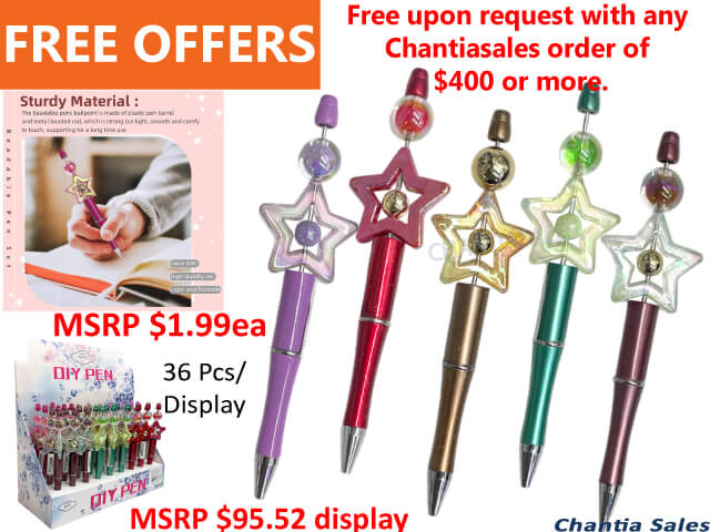 PEN - BEADED STAR (36pcs/1 Display) (Free upon request with any order of $400 or more. Limit One Free Offer per order.)