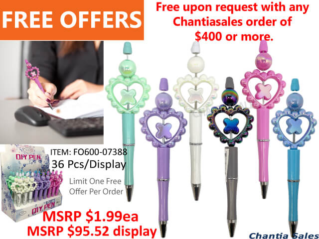 PEN - BEADED HEART (36pcs/1 Display) (Free upon request with any order of $400 or more. Limit One Free Offer per order.)