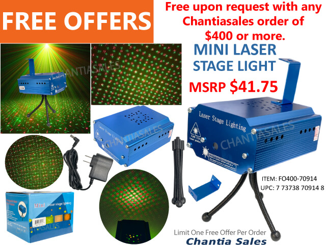 MINI LASER STAGE LIGHT (Free upon request with any order of $400 or more. Limit One Free Offer per order. Limited Time Offer)