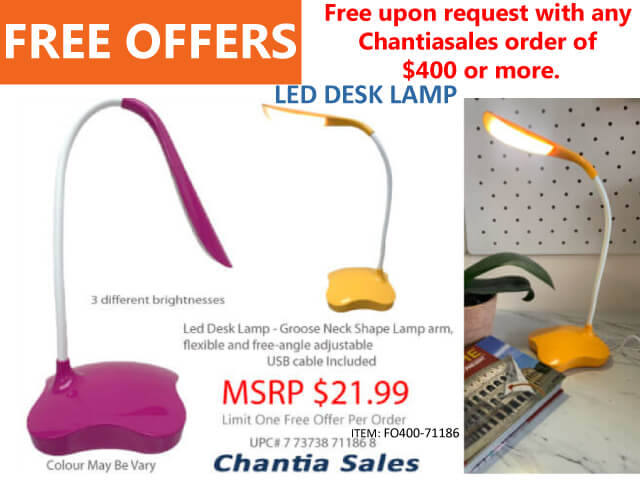LED DESK LAMP 1PC- Free upon request with any order of $400 or more. Limit One Free Offer per order.