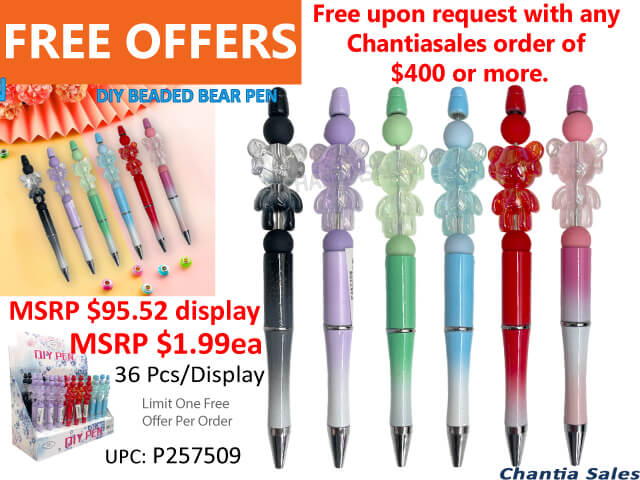 PEN - BEADED ROUND (36pcs/1 Display) (Free upon request with any order of $400 or more. Limit One Free Offer per order.)