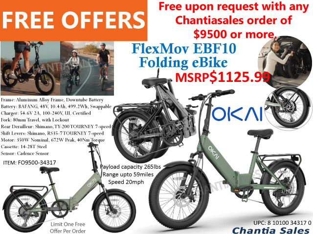 E-BIKE BLACK COLOUR #FLEXMO FBF10 (Free upon request with any order of $9500 or more. Limit One Free Offer per CUSTOMER.)