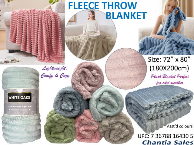BLANKET - FLEECE THROW ULTRA PLUSH ASST'D COLORS 180x200CM- 72x80"