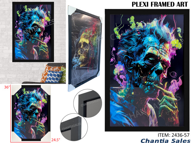 PLEXI FRAMED ART 24X36" - ZOMBIE SMOKING (PACKAGE:2pcs in a case) MIN order of 2pcs, Mix and match with other style 24X36".