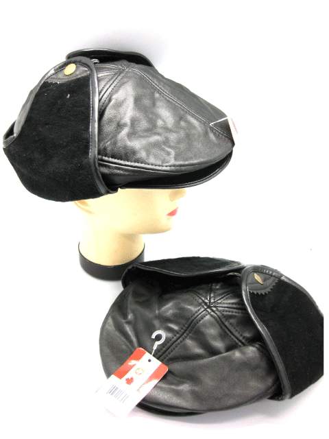 BF25 - Winter Men's Hat - Leather Look With Flip Down Ear Covers.
