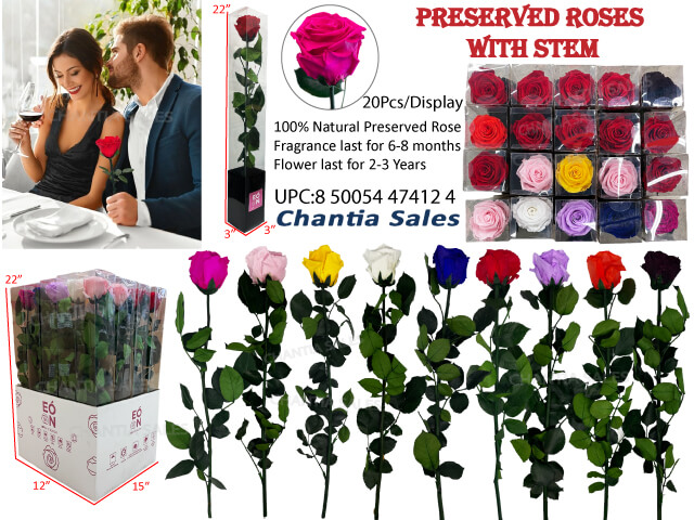 BF25 - FOREVER ROSE - PRESERVED LONG STEM ROSE (20/DISPLAY)