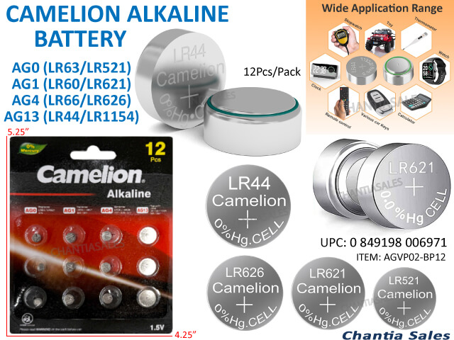 CAMELION - AGO, AG1, AGS, AG13 ALKALINE BATTERY #CAM AGVP02-BP12