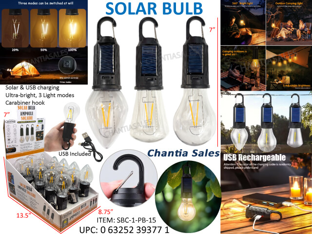 SOLAR BULB WITH CARABINER CLIP #SBC-1-PB-15