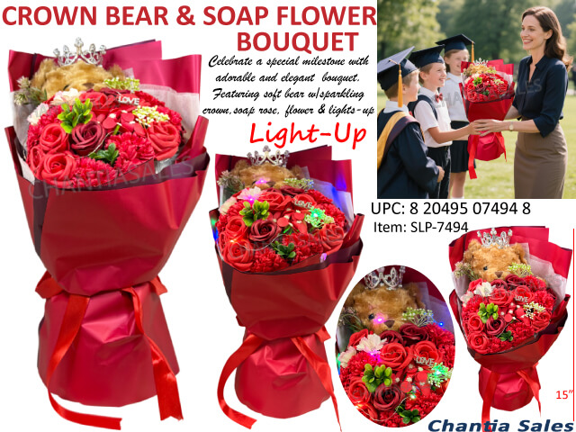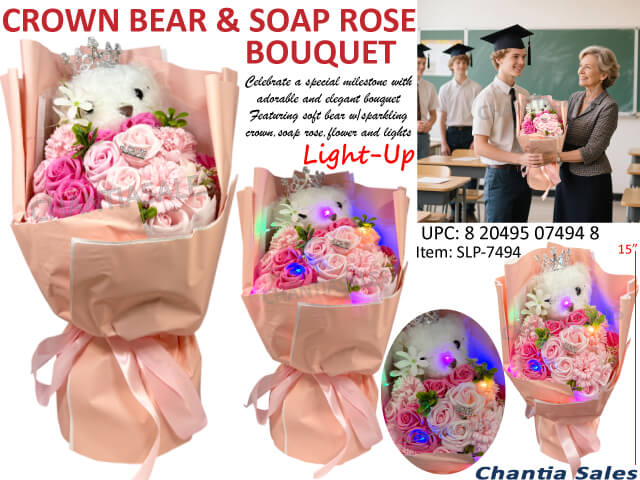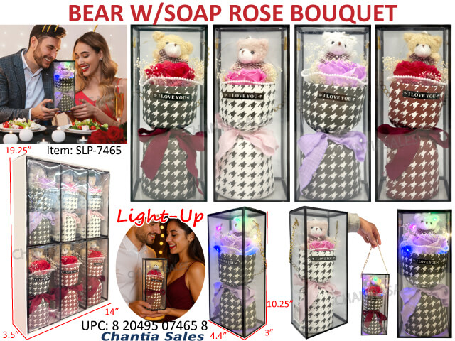 PLUSH BEAR & ROSE BOUQUET W/ LIGHT (5/DISPLAY) #SLP-7442