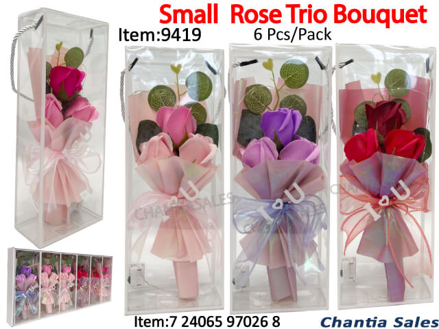 SMALL ROSE TRIO BOUQUET (6/PK) #9419