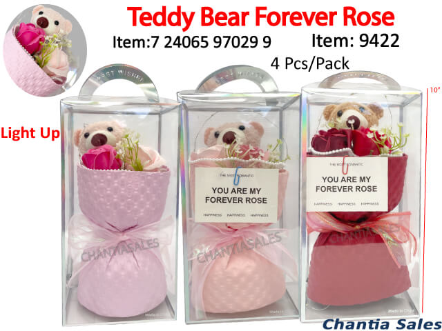 TEDDY BEAR FOREVER ROSE BOUQUET (4/PK) #9422