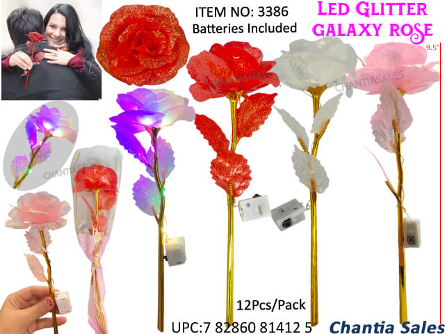 ROSE LED GLITTER GLAXAY (12/PK) #3386