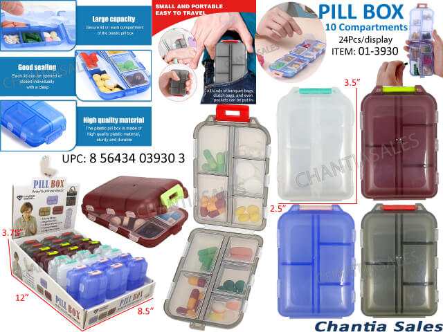 PILL BOX - 10 COMPARTMENT (24/DIS,192/C) #01-3930
