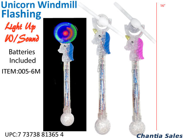 UNICORN WINDMILL FLASHING WAND ((12/PK) #004-6M