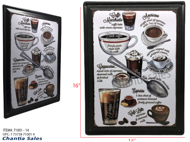 METAL SIGN 12x16- DIFFERENT COFFEES