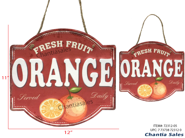 METAL EMBOSSED W/ROPE HANGER- FRESH FRUIT ORANGE