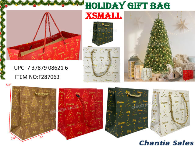 CHRISTMAS GIFT BAG - HOLIDAY THEME XSMALL #F287068