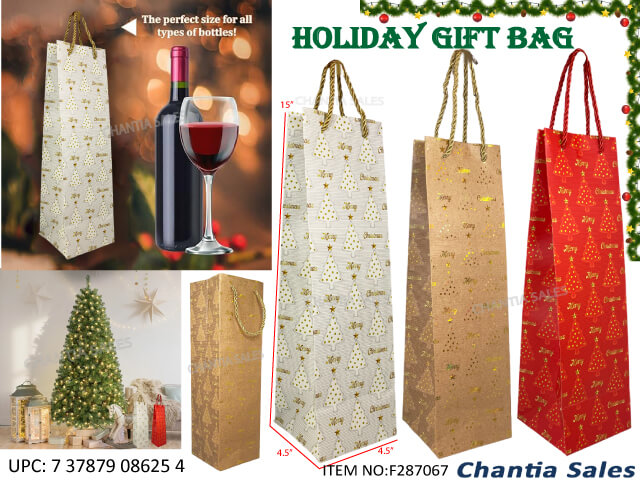 CHRISTMAS GIFT BAG - HOLIDAY THEME WINE #F287072