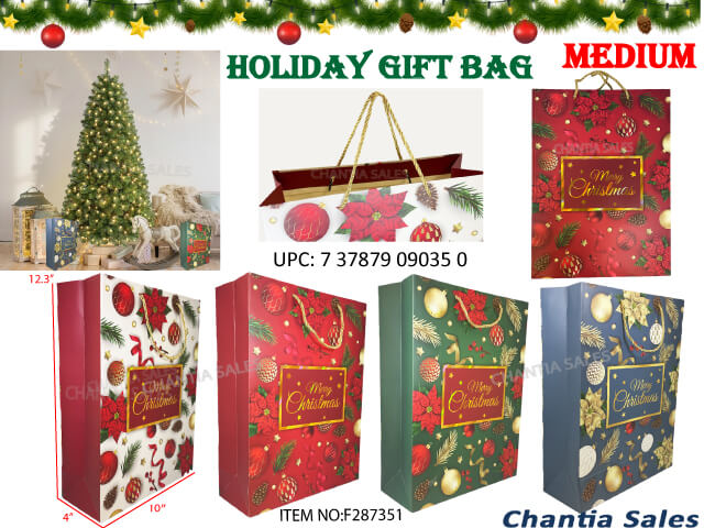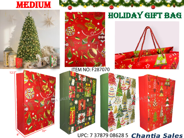 CHRISTMAS GIFT BAG - HOLIDAY THEME MEDIUM #F287070