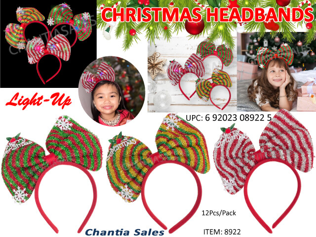 CHRISTMAS HEADBAND - BIG BOW LIGHT UP #8922