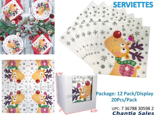 SERVIETTES CHRISTMAS - REINDEER #30598