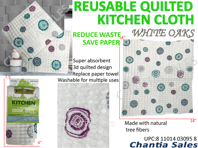 SP26-WHITEOAKS - KITCHEN CLOTH QUILTED REUSABLE 2PCS (14X14") (24/Master Case)