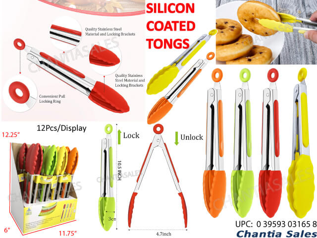 SP26 - SILICONE COATED KITCHEN TONGS (12/Display) #03165